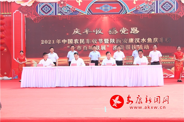 魚躍慶豐收,脫貧感黨恩。伴隨著《盛世歡歌》《豐收中國年》等一首首贊歌的開唱,現(xiàn)場漁業(yè)捕撈活動,全魚宴、小龍蝦烹飪比賽,漢陰特色富硒產(chǎn)品展銷、特色農(nóng)業(yè)產(chǎn)業(yè)建設(shè)成果展示和網(wǎng)絡(luò)直播帶貨等消費幫扶活動同步展開,熱鬧非凡。來自漢陰縣的17家企業(yè)以及村民們帶來的獼猴桃、茶葉、紅薯粉條、土蜂蜜、豆腐干等各種農(nóng)副產(chǎn)品,吸引群眾紛紛駐足品嘗購買。
