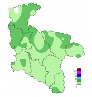 下圖為2021-10-7 07:00至2021-10-8 07:00安康累計降水分布(單位:mm)
