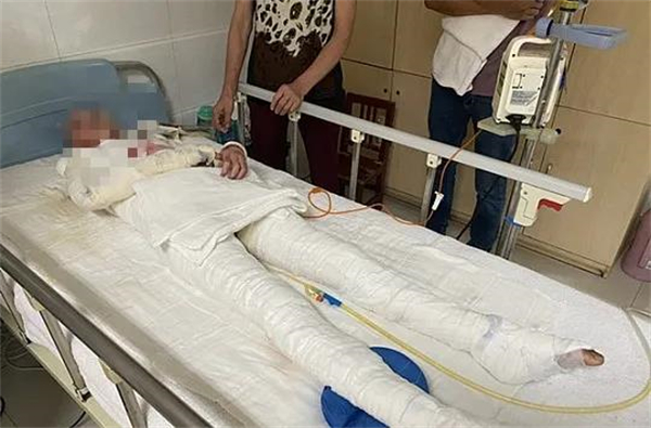 得知消息后的靈靈奶奶趕到現(xiàn)場,已有兩個女孩被燒傷,看到孫女躺在地上想去抱她,結果孩子身上的皮膚一碰就掉。
