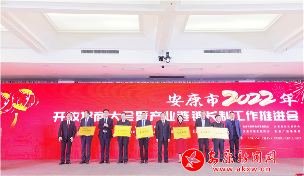 會(huì)議通報(bào)了安康市經(jīng)濟(jì)社會(huì)發(fā)展、重點(diǎn)產(chǎn)業(yè)鏈鏈長(zhǎng)制推進(jìn)、重點(diǎn)產(chǎn)業(yè)方向、營(yíng)商環(huán)境及2022年開放招商重點(diǎn)工作,表彰了2021年招商引資工作先進(jìn)單位和先進(jìn)個(gè)人。李華楓等16名同志聘為安康市開放發(fā)展高級(jí)顧問。