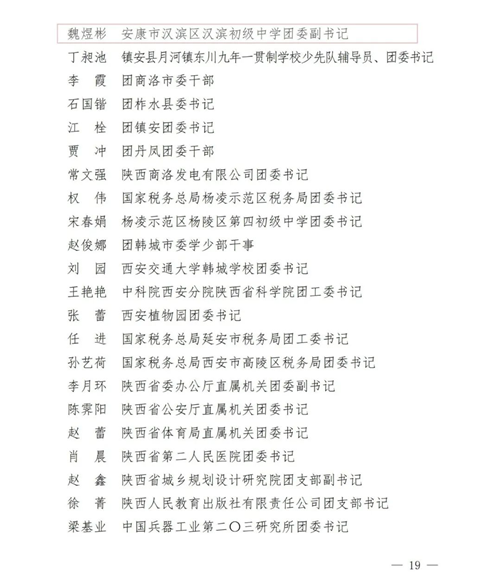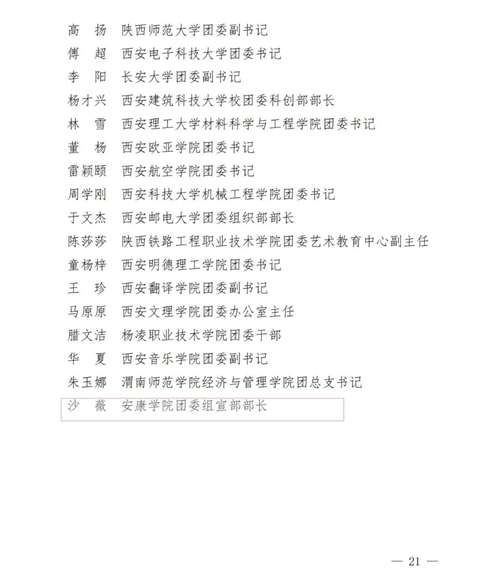 2020-2021 年度“陜西省優(yōu)秀共青團(tuán)干部” 名單