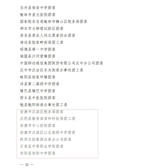 2020-2021 年度“陜西省五四紅旗團(tuán)委”名單