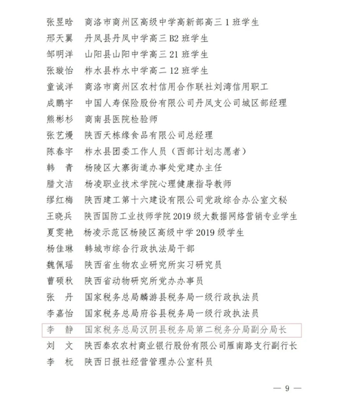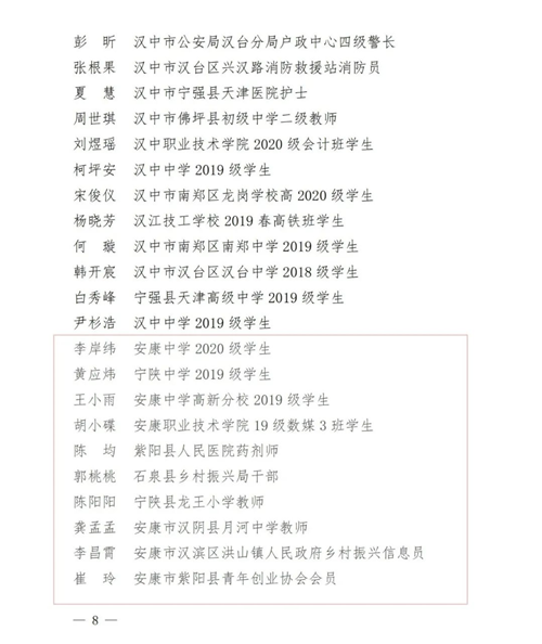 2020-2021 年度“陜西省優(yōu)秀共青團(tuán)員”名單