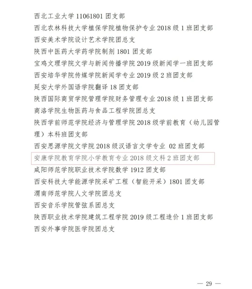 2020-2021 年度“陜西省五四紅旗 團(tuán)支部”名單