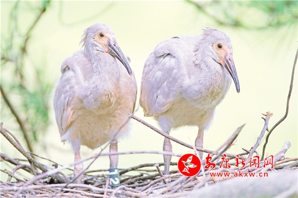 4月14日,在寧陜縣朱鹮野化放飛基地,3只朱鹮破殼而出。這是今年繁殖季“寧陜籍朱鹮”首批成功孵化的新生朱鹮。
