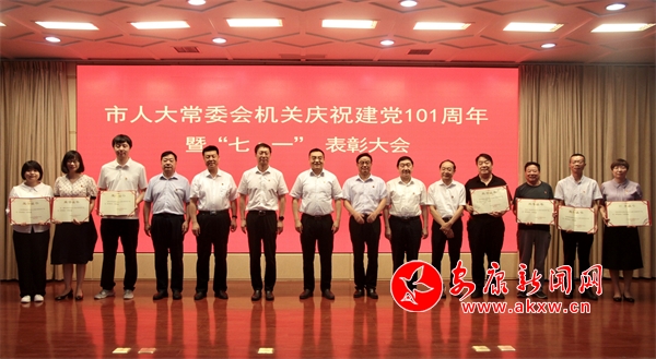 本網(wǎng)訊(記者 陸青波)在中國共產(chǎn)黨101周年華誕到來之際,6月27日,市人大常委會(huì)機(jī)關(guān)舉行慶祝建黨101周年暨“七一”表彰大會(huì)。市人大常委會(huì)黨組書記、主任王彪,黨組副書記、副主任鄭小東,黨組成員、副主任王孝成、趙立根,廳級(jí)領(lǐng)導(dǎo)羅萬平、周永鑫,退休老領(lǐng)導(dǎo)王安信、田廣文、李隆毅,二級(jí)巡視員吳少華出席會(huì)議,秘書長(zhǎng)左自文主持會(huì)議。