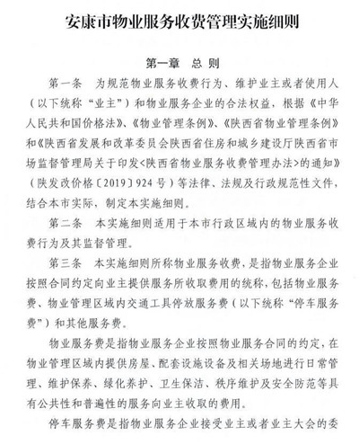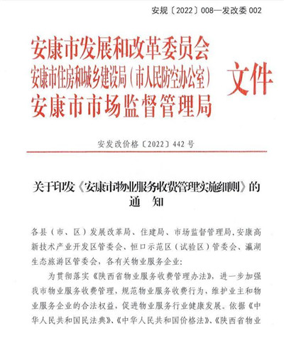 關(guān)于印發(fā)《安康市物業(yè)服務(wù)收費管理實施細則》的通知