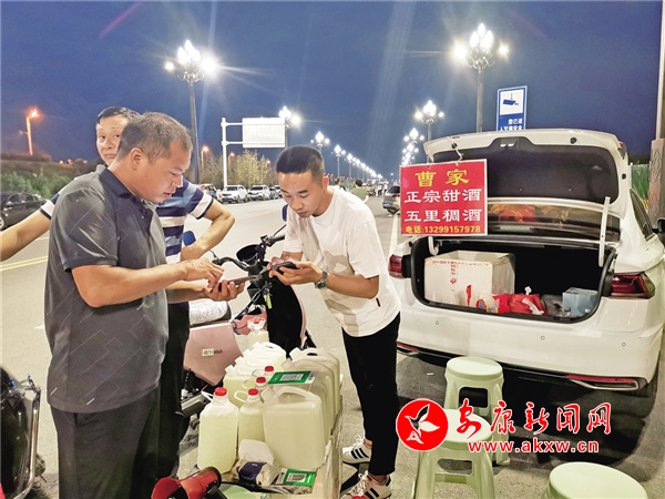 談及對(duì)“后備箱”經(jīng)濟(jì)的看法,以及為何要參與夜市擺攤的緣由時(shí),雷玉濤笑著說道:“最開始就是想著下班了沒事干過來擺攤,順便給自家的稠酒做宣傳,后來慢慢地從擺攤的過程中找到了樂趣。平時(shí)我大部分時(shí)候都坐在辦公室,沒有太多和人接觸的機(jī)會(huì),擺攤后我接觸到形形色色的顧客,和別的擺攤車主聊聊天,感覺挺有意思的,而且收入還增加了,也體驗(yàn)了不同的經(jīng)營形式。我理解的‘后備箱經(jīng)濟(jì)’不僅僅具備經(jīng)濟(jì)功能,還有社交、文化、娛樂功能,且形式靈活,適合多種群體創(chuàng)業(yè)和體驗(yàn)生活。”