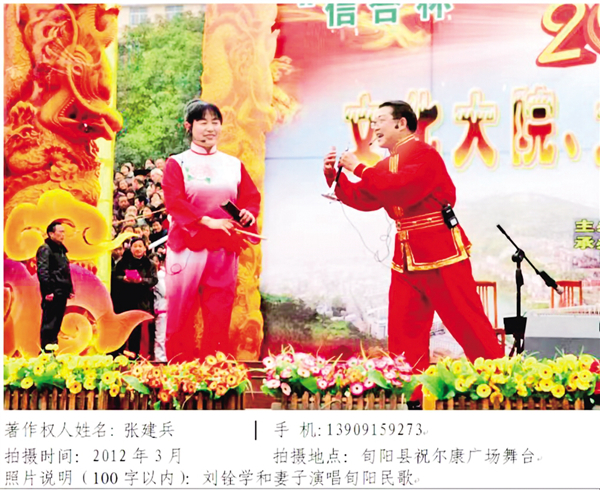 劉銓學(xué)和妻子在旬陽(yáng)祝爾慷廣場(chǎng)演唱旬陽(yáng)民歌