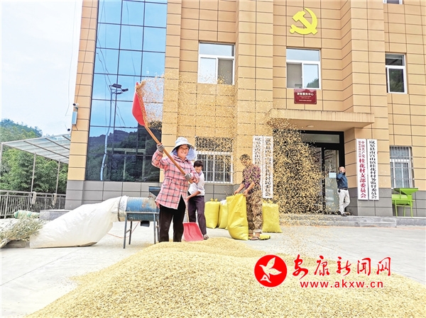 南宮山鎮(zhèn)桂花村村民曬稻谷
