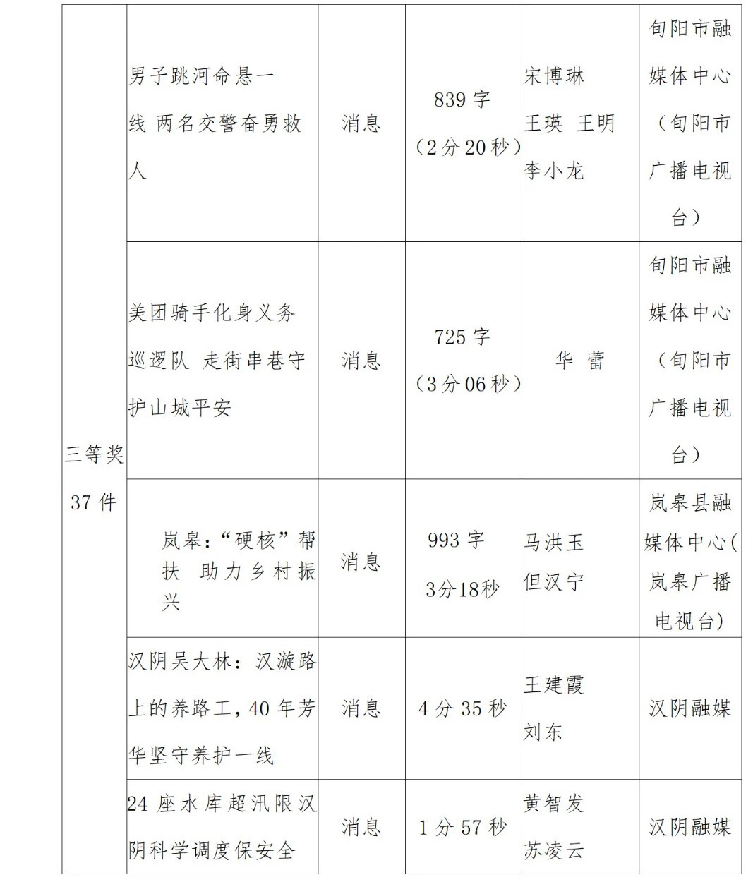 2022年度安康新聞獎(jiǎng)評(píng)審工作在中共安康市委宣傳部的指導(dǎo)下,由市記協(xié)具體組織實(shí)施,經(jīng)過各申報(bào)單位推薦、初審,市記協(xié)復(fù)審并組織專家定評(píng),評(píng)選出擬獲安康新聞獎(jiǎng)作品96件,其中一等獎(jiǎng)23件、二等獎(jiǎng)36件、三等獎(jiǎng)37件。擬授予姚登等14名同志“安康市優(yōu)秀新聞工作者”榮譽(yù)稱號(hào)。