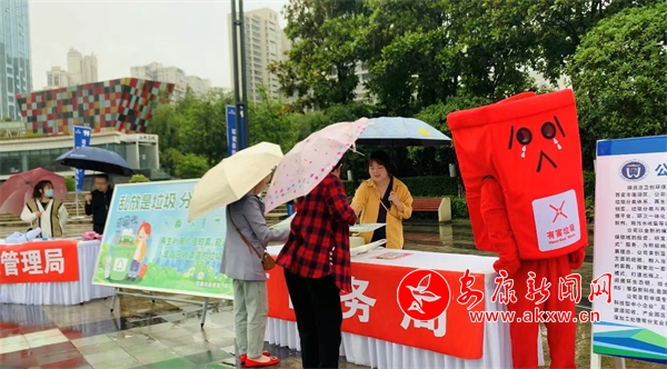 活動(dòng)當(dāng)日陰雨綿綿,北辰公園人頭攢動(dòng)。在一排排豐富多彩的宣傳展板和生活垃圾分類(lèi)成果展區(qū)前,不少市民駐足觀看和詢(xún)問(wèn)有關(guān)情況,工作人員耐心解答并熱情洋溢地宣傳普及生活垃圾分類(lèi)知識(shí);顒(dòng)現(xiàn)場(chǎng)還設(shè)置有妙趣橫生的環(huán)保游戲,身著環(huán)保標(biāo)識(shí)的“人形玩偶”頻頻與大家互動(dòng),在輕松歡樂(lè)的氛圍中傳遞環(huán)保理念。
