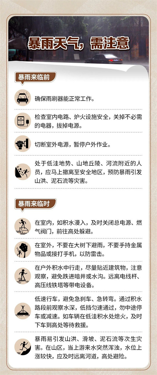 如果暴雨來襲,你知道應(yīng)該注意哪些安全事項嗎?處于低洼地段,在門口放置擋水板;一旦家中進(jìn)水,第一時間關(guān)電閘;雨天出行,注意腳下坑洞……