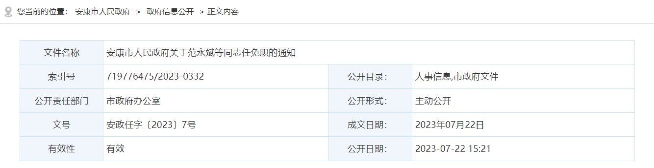 免去劉敏同志安康高新產業(yè)發(fā)展投資(集團)有限公司副總經理職務;