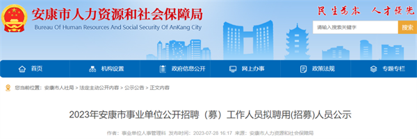 根據(jù)《2023年安康市事業(yè)單位公開(kāi)招聘(募)工作人員公告》規(guī)定,經(jīng)報(bào)名、資格審查、筆試、面試、體檢、考察等程序,現(xiàn)將第一批擬聘用(招募)人員名單(詳見(jiàn)附表)予以公示。