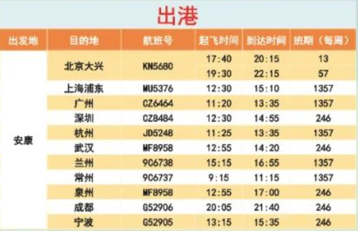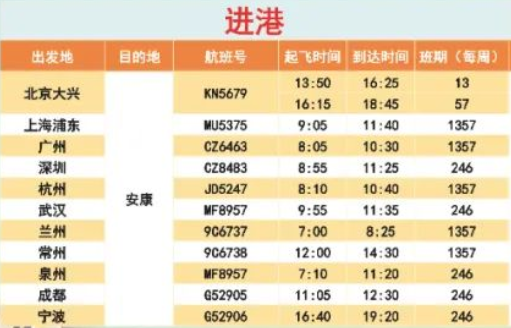 安康機場全新航班時刻表來啦!