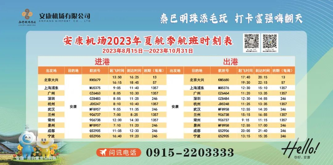 安康機場2023年夏航季航班時刻表