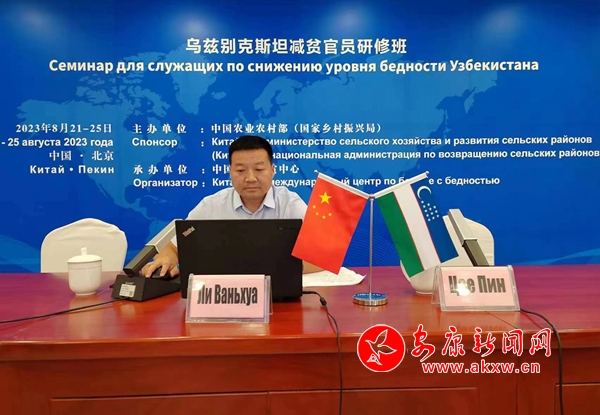 烏茲別克斯坦是上海合作組織框架內(nèi)的重要國家,是中國的友好鄰邦和全面戰(zhàn)略合作伙伴。為積極落實(shí)中烏兩國元首指示精神,中國農(nóng)業(yè)農(nóng)村部(國家鄉(xiāng)村振興局)高度重視中烏減貧交流中的能力建設(shè),本次研修班參訓(xùn)學(xué)員多達(dá)9500余人,在中國歷年的國際減貧培訓(xùn)中前所未有。安康《小玩具做出大文章——安康市大力發(fā)展毛絨玩具產(chǎn)業(yè)幫助群眾實(shí)現(xiàn)就業(yè)增收》案例,經(jīng)省、市鄉(xiāng)村振興局推薦,作為陜西省唯一減貧案例,于8月24日下午,由安康市人社局副局長李萬華,向?yàn)跗潉e克斯坦基層一線減貧官員在線進(jìn)行經(jīng)驗(yàn)講述。