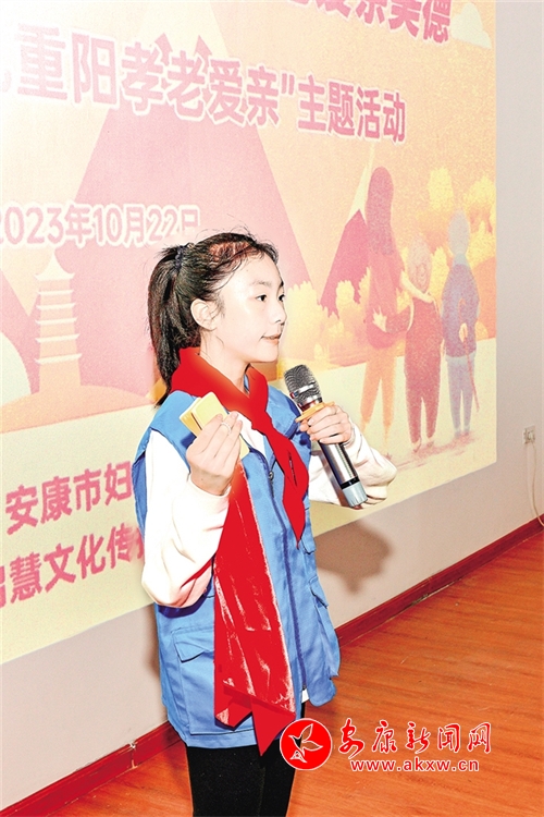為弘揚中華民族傳統(tǒng)美德,營造尊老、愛老濃厚氛圍,在10月22日重陽節(jié)即將來臨之際,安康日報社開展“九九重陽 孝老愛親”主題活動。本次活動由安康市關(guān)心下一代工作委員會、安康市婦女聯(lián)合會、安康日報社主辦,安康少年新聞學(xué)院、安康金州啟慧文化傳播有限公司承辦;顒又械氖謩菸璞硌荨吨腥A孝道》、互動游戲《拍拍操》、分享重陽糕、茶藝表演及為老人奉茶等環(huán)節(jié),讓現(xiàn)場每個人感受到了濃濃的節(jié)日氛圍。(記者 潘潤生 攝影報道)