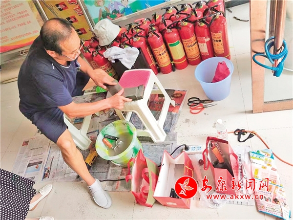 3年前,和王煥娣一起到這兒的還有原絲綢二廠退休職工劉次巧、退休法官李益安以及街道退休干部王玉英等,其中最為年長(zhǎng)的王玉英今年已經(jīng)八十多歲,幾人都是社區(qū)離退休黨支部的黨員。縫縫補(bǔ)補(bǔ)、磨刀磨剪子、理發(fā)、調(diào)解矛盾……大家“各顯神通”,愛(ài)心驛站日漸熱鬧起來(lái)。