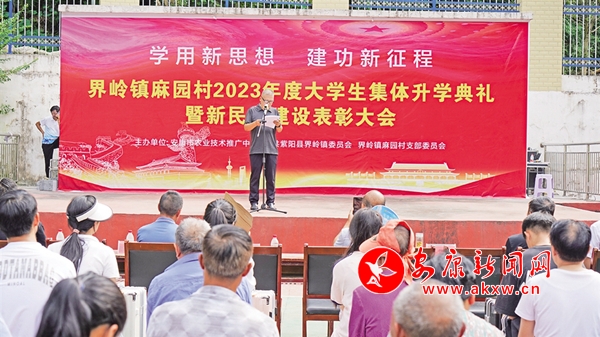 界嶺鎮(zhèn)麻園村2023年度集中升學(xué)禮暨新民風(fēng)建設(shè)表彰活動(dòng)現(xiàn)場(chǎng)——圖為學(xué)生家長(zhǎng)公開承諾不辦“無(wú)事酒” 陳楚庚 攝