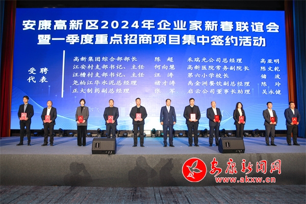 本網(wǎng)訊(記者 吳單 見習(xí)記者 吳雋雅)1月19日,安康高新區(qū)舉行2024年企業(yè)家新春聯(lián)誼會暨一季度重點招商項目集中簽約活動。市委副書記、市長王浩出席并見證簽約,市委常委、安康高新區(qū)黨工委書記羅武俠出席并致辭。