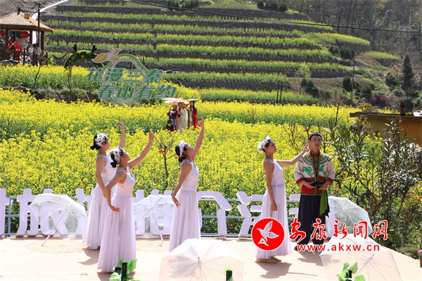 活動以“花漫三秦 春山有約”為主題。在大道鑼鼓鏗鏘有力的鼓點中,活動拉開序幕,配樂散文詩朗誦《詩意三秦之花語》、秦腔表演《五典坡——飄彩》、陜北民歌《牡丹花與放羊娃》、紫陽民歌《山之茶》、嵐皋武術(shù)表演等陜西各地獨具地方特色的文藝節(jié)目融入春的元素,展現(xiàn)出了陜西豐富的旅游資源和優(yōu)美春色。