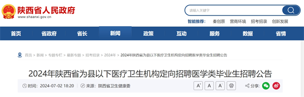 2024年陜西省為縣以下醫(yī)療衛(wèi)生機構(gòu)定向招聘醫(yī)學(xué)類畢業(yè)生招聘公告