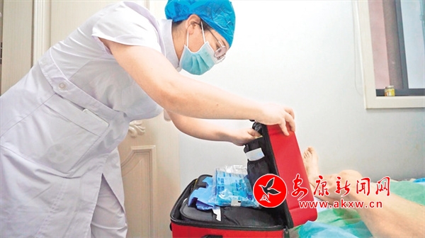 短短幾分鐘時(shí)間就替代了以往要往返醫(yī)院一個(gè)多小時(shí)的工作,60歲的樊阿姨在這項(xiàng)“訂單護(hù)理”工作中切身感受到了方便。