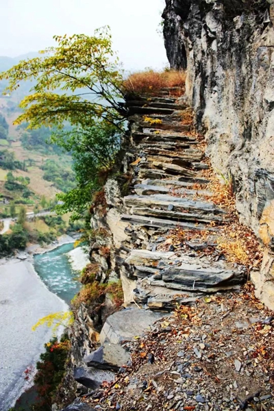 秋天徒步于鎮(zhèn)坪古鹽道,仿若進(jìn)入一個(gè)金色的世界。秋日溫煦的陽(yáng)光透過(guò)金色的樹葉灑落在石板上,那一張張金黃的葉子像黃色的蝴蝶,在光與影中飛舞著,這是秋日獨(dú)有的靈動(dòng)。