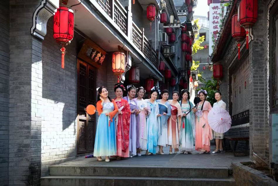 橋兒溝景區(qū):10月2日,在橋兒溝街區(qū),一場(chǎng)漢服快閃秀活動(dòng)在這里精彩上演,吸引大批游客隨著巡游隊(duì)伍暢游最美古街,充分展示了傳統(tǒng)服飾的文化魅力。