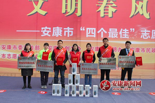 安康新聞網(wǎng)訊(通訊員 王靜)3月3日,春風(fēng)和煦。在安康市中心廣場上,身穿紅色、綠色、藍(lán)色小馬甲的志愿者們?yōu)椤拔拿鞔猴L(fēng)行動暨安康市‘四個最佳’志……