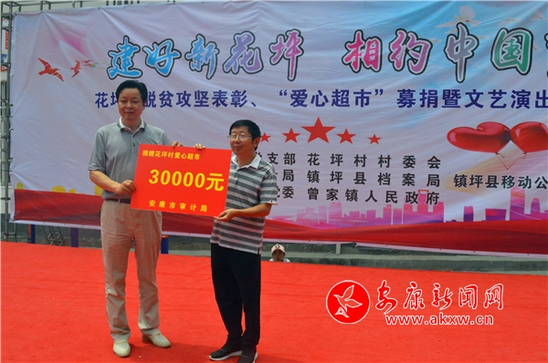安康新聞網(wǎng)訊(通訊員 陳東青)7月26日上午,鎮(zhèn)坪縣曾家鎮(zhèn)花坪村人聲鼎沸,比三伏天的酷暑更加火熱,比過春節(jié)的氣氛更加熱烈。由市審計(jì)局、鎮(zhèn)坪縣檔案局、縣移動(dòng)公司等市縣幫扶部門協(xié)辦的花坪村脫貧攻堅(jiān)表彰大會(huì)暨愛心超市募捐活動(dòng)正在村委會(huì)前的活動(dòng)廣場(chǎng)舉行。會(huì)上對(duì)花坪村的“致富帶頭人”“勤勞致富模范”等脫貧攻堅(jiān)和“五凈家庭”“孝老愛親模范”“好媳婦”“優(yōu)秀共產(chǎn)黨員”等踐行新民風(fēng)典型進(jìn)行了表彰獎(jiǎng)勵(lì)。活動(dòng)現(xiàn)場(chǎng)還為村上愛心超市募集捐款10.4萬元。