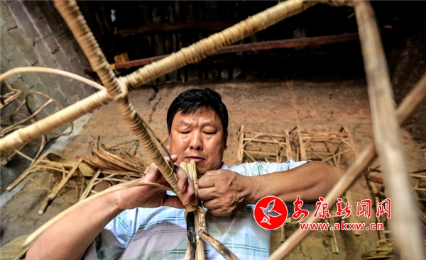 在白河大山深處,能編織制作藤椅的手藝人現(xiàn)在已經(jīng)不多了,經(jīng)過四處打聽得知,五十二歲的周晉車仍然堅(jiān)守著自己的技藝。家住白河縣冷水鎮(zhèn)花灣村三組的周晉車高中畢業(yè)以后,1988年就開始拜師學(xué)藝,逐漸掌握了剝、劃、拋、砍、燒、磨、纏、編、裁、劈、剖、削、撕、勻、刮等十八道工序以及粗、細(xì)藤條的全套編織技法。慢慢地,周晉車師傅遠(yuǎn)近聞名,不少外地客戶上門定做,產(chǎn)品一度銷售到西安、武漢、十堰、竹山、平利等地。