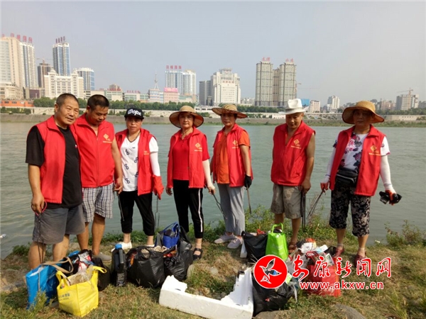 安康新聞網(wǎng)訊(實習記者 唐正飛 通訊員 王宗梅 林超 )8月17日天蒙蒙亮,漢江河岸旁除了零零星星的一些晨練市民,在水岸草叢處,身著紅色志愿服裝的海燕和她的隊友們在清澈的河水映襯下,格外顯眼。每天從早上6點起,大北社區(qū)居民海燕和她的隊員們就開始了一天的河岸垃圾打撈護河工作,從水西門到暴家巷河段,海燕和她的隊友們一趟走下來要花近1個小時,盡管是“三伏”天,海燕和她的隊員每天都要走一趟。