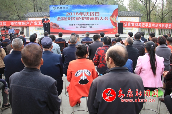 安康新聞網(wǎng)訊(實(shí)習(xí)記者 黃慧慧)10月17日,正值全國第五個(gè)“扶貧日”,安康農(nóng)商銀行開展扶貧日金融宣傳暨表彰大會(huì),F(xiàn)場開展金融扶貧政策宣傳、扶貧企業(yè)評(píng)級(jí)授信、發(fā)放“5321”扶貧貸款,省聯(lián)社、區(qū)政府、省聯(lián)社安康審計(jì)中心、安康農(nóng)商銀行相關(guān)負(fù)責(zé)人參加。