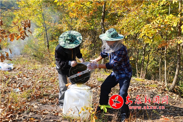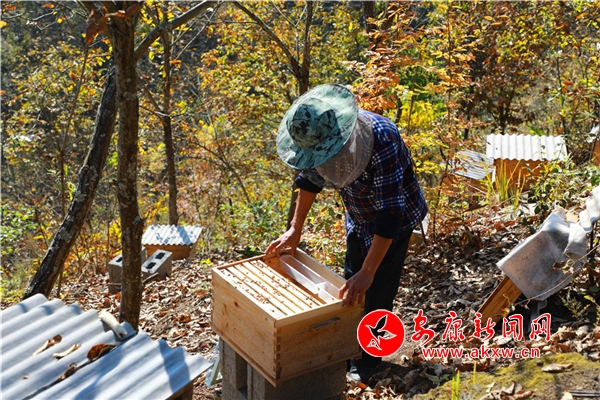 深秋時節(jié),涂應輝帶著60多歲的貧困戶李齊銀穿梭在樹林里,認真查看一個個蜂箱。他和李齊銀配合默契,動作嫻熟,不知情的還以為這是父子倆。“這是我們村發(fā)展積極性最高的一戶,他妻子有病,家里困難,一開始我?guī)е黄饘W技術,技術成熟后6月份他領了11箱自己養(yǎng),現(xiàn)在發(fā)展到14箱了。”涂應輝說道。