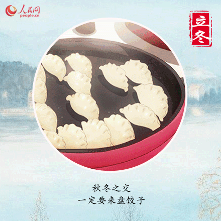 在北方,尤其是北京、天津的人們立冬講究吃餃子。餃子來源于“交子之時(shí)”,立冬是秋冬之交,所以交子之時(shí)的餃子不能不吃。有的地方立冬有吃南瓜或軟棗的風(fēng)俗,在天津河?xùn)|“老天津衛(wèi)”聚居地,人們吃倭瓜餡的餃子。