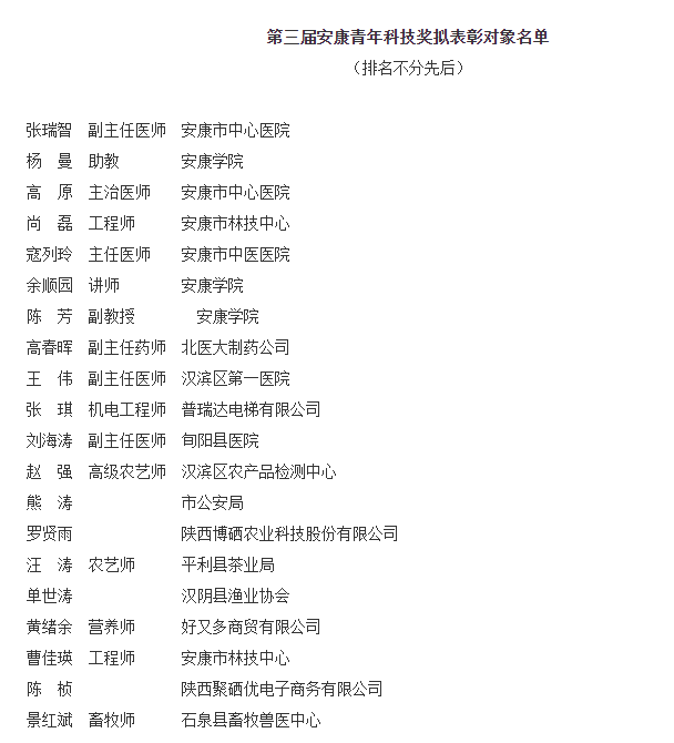 附:第三屆安康青年科技獎(jiǎng)擬表彰對(duì)象名單