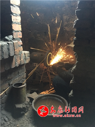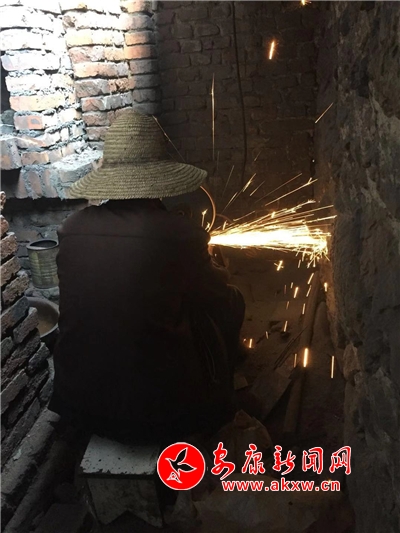 “那也行。”黃師傅接過祝工手中的風(fēng)鎬頭和洋鎬,逐個放入火爐中。“今天能打好嗎?明早一上班就要用。”祝工又從蛇皮袋取出一把銹跡斑斑的菜刀說:“這把菜刀買了也沒用幾次,鈍的很,磨也不行,請你幫忙看下。”接過刀,黃師傅看了看說:“刀口太厚了,用砂輪打磨一下就好了。”話畢轉(zhuǎn)身回到店內(nèi),出來時手里拿著一個砂輪,“你拿去用吧!”祝工問多錢,黃師傅說:“算了,不要錢,你拿去用吧!放在店里閑著也是閑著。”轉(zhuǎn)身取出火爐中燒得通紅的風(fēng)鎬頭,掄起鐵錘鍛打起來。經(jīng)過鍛打、開尖、入水、再入火爐煅燒,入水出水間完成淬火,風(fēng)鎬頭、洋鎬處理好了。