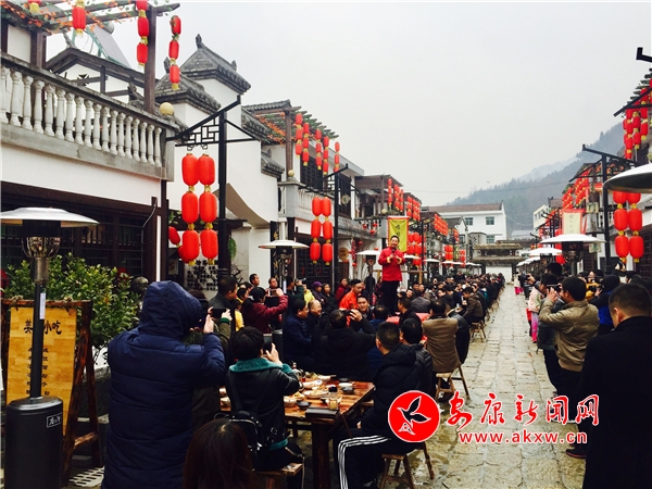 安康新聞網(wǎng)訊(記者張喬) 12月28日,石泉縣后柳鎮(zhèn)長街上,32桌庖湯宴開席,游客和當(dāng)?shù)厝艘黄鸩氯、喝酒、吃肉,提前享受濃濃的年味。這只是2019年石泉庖湯會的預(yù)演,2019年1月12日(臘月初七)石泉第七屆漢水庖湯會將正式開吃。