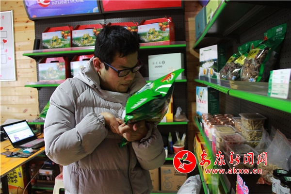 苦心人,天不負。在培訓期間結(jié)識的朋友,多次幫助張龍海。愛心人士趙安康、寇玉軍不僅在生活上施以援助,為他送去擋風簾、電熱毯等物資,而且?guī)退跐h濱區(qū)果園小區(qū)開設(shè)了一個土特產(chǎn)實體店。前期張龍海不需要投資,由趙安康幫他進貨、補貨,張龍海只需對產(chǎn)品進行市場調(diào)研,根據(jù)行情出售各類農(nóng)產(chǎn)品。他活學活用自己所學的電商知識,不僅在線下拓展市場,還在線上電商平臺創(chuàng)建了商鋪。