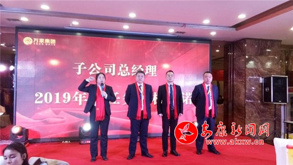 安康新聞網(wǎng)訊(通訊員 劉忠明) 1月20日,陜西萬家實業(yè)(集團(tuán))有限公司2018年度總結(jié)表彰暨2019年度任務(wù)啟動大會在融華國際酒店宴會廳隆重舉行。