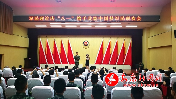 在聯(lián)誼會現(xiàn)場,由市發(fā)改委機關黨委和武警安康支隊聯(lián)合舉辦的“軍民聯(lián)誼慶八一,攜手共筑中國夢”主題活動拉開帷幕,開篇詩朗誦《軍人選擇》讓大家融入到從軍光榮、夢想偉大、青春無悔的美好祝愿中,武警戰(zhàn)士匕首操表演贏得陣陣掌聲,《厲害了,我的國》集體誦讀鏗鏘有力,《為了誰》的男女合唱詮釋了軍人榮譽……通過男聲獨唱、軍地合唱、樂隊獻唱、集體誦讀等豐富多彩的文藝形式,大家在激昂、團結、奮進的氛圍中感受和平時期祖國的強大和輝煌,攜手把活動氣氛一次次推向高潮。