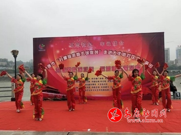 本網(wǎng)訊(通訊員 林超)10月19日,“不忘初心、牢記使命——掃黑除惡暨五城聯(lián)創(chuàng)”文藝演出走進(jìn)老城街辦大北街社區(qū),200余名觀眾在水西門(mén)廣場(chǎng)現(xiàn)場(chǎng)觀看了演出。