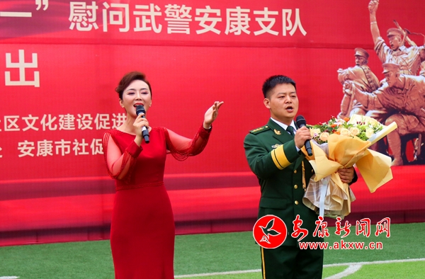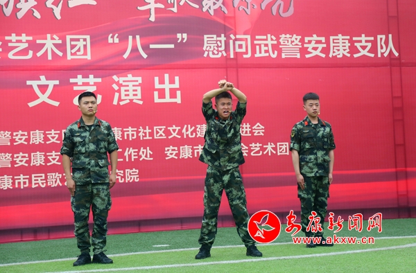 本網(wǎng)訊(通訊員 趙坤)“一聲聲問(wèn)候,傳遞著樸素和真摯的情感。一句句話(huà)語(yǔ),表達(dá)著淳樸而真實(shí)的祝福。今天我們相聚在這里,一起用心來(lái)感受真情,用愛(ài)來(lái)澆灌軍民魚(yú)水深情……”話(huà)音剛落,臺(tái)下響起了雷鳴般的掌聲。8月1日上午,安康市社區(qū)文化建設(shè)促進(jìn)會(huì)代表及演職人員一行,走進(jìn)武警安康支隊(duì),為全體官兵獻(xiàn)上了一場(chǎng)美輪美奐的視聽(tīng)盛宴。