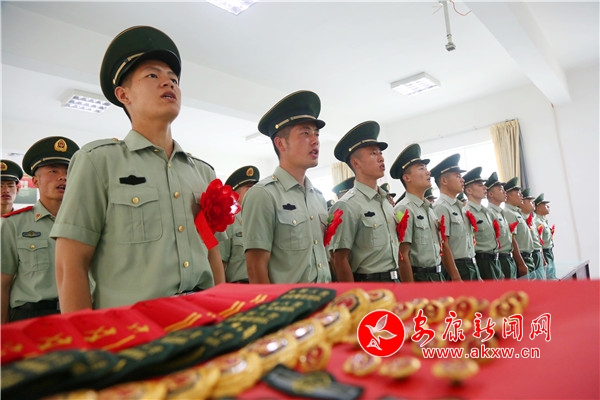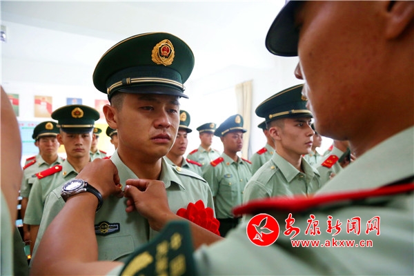 “為滿服役期士兵卸軍銜……”離隊前,留隊戰(zhàn)友為退伍老兵卸下警銜、領(lǐng)花、帽徽和胸標,為他們戴上“光榮花”。此時此刻,訓練場上的汗流浹背、執(zhí)勤路上的日曬雨淋、比武場上的斬金奪銀、戰(zhàn)友之間的情同手足,一幕幕,一幀幀,如此真切,如此清晰,一切的一切都成了最美好的回憶。“我舍不得這心愛的紅肩章、綠迷彩。”退伍老兵馮歡看著卸下的肩章潸然淚下。NEx安康新聞網(wǎng)