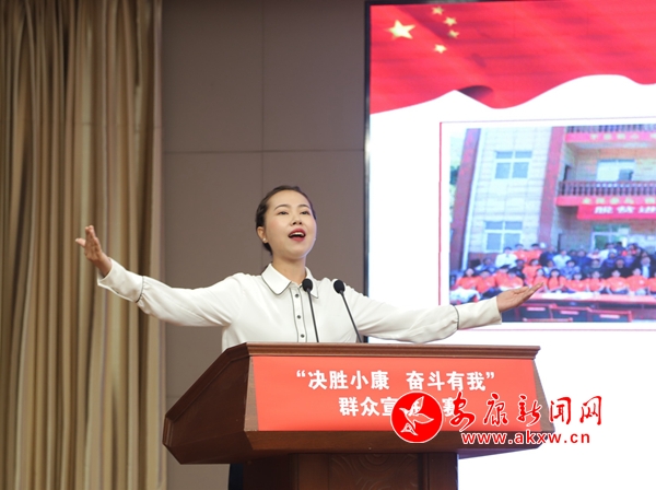 “1月23日,我接到馳援武漢的任務(wù),只有五分鐘時限跟家人商量。我沒有和家人商量,直接答應(yīng)了。”“這是一份特殊的報紙,作為改革開放四十年來安康日報唯一一份號外,它向人民莊重宣告:安康實現(xiàn)全域脫貧摘帽了!”“毛絨玩具其實沒有‘毛’,安康港口可以沒有水,摒棄陳舊認(rèn)知,打破定勢思維,在變化中踐行不變的初心和使命……”49名選手,有駐扎一線揮汗灑淚幫扶貧困群眾的扶貧干部,有抗擊疫情與生命賽跑的白衣天使,有保衛(wèi)綠水青山的環(huán)保衛(wèi)士,有在平凡崗位日復(fù)一日精益求精的普通干部,他們以群眾的視角說奮斗、話成就、談啟示,通過每一段講述、每一個故事弘揚愛國奉獻(xiàn)精神,凝聚團結(jié)奮斗力量,展示安康創(chuàng)優(yōu)風(fēng)貌,激發(fā)追趕超越干勁,向決勝全面小康奮勇前進。講述真人真事真感情,震撼著在場的每一位聽眾,引起了強烈的共鳴,宣講選手們也表示通過這次比賽獲益良多。