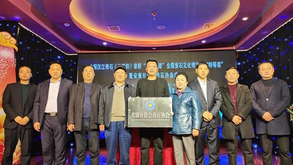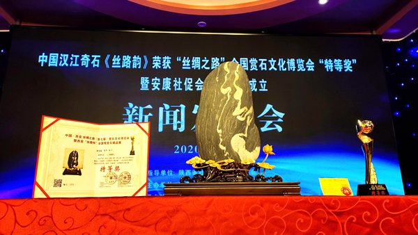 11月19日,安康市社區(qū)文化建設(shè)促進(jìn)會(huì)舉行“漢江奇石《絲路韻》榮獲‘絲綢之路’全國(guó)賞石文化博覽會(huì)特等獎(jiǎng)暨安康市社促會(huì)奇石協(xié)會(huì)成立大會(huì)”新聞發(fā)布會(huì)。市政協(xié)原副主席李啟良、黃秀玲到會(huì)祝賀。安康籍著名男高音歌唱家、聲樂(lè)教育家周發(fā)猛以及市級(jí)相關(guān)部門(mén)、新聞媒體和部分石友參加新聞發(fā)布會(huì)。
