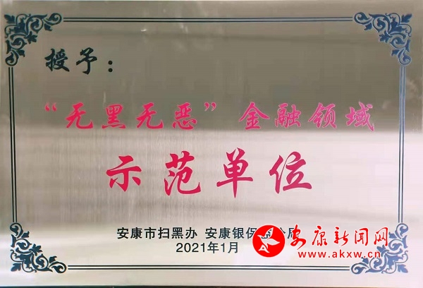 本網(wǎng)訊(通訊員 米安 梁曉波 )近日,寧陜農(nóng)商銀行被安康市掃黑辦公室、安康銀保監(jiān)分局授予“無黑無惡”金融領(lǐng)域示范單位榮譽稱號。